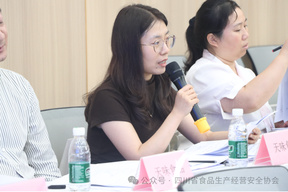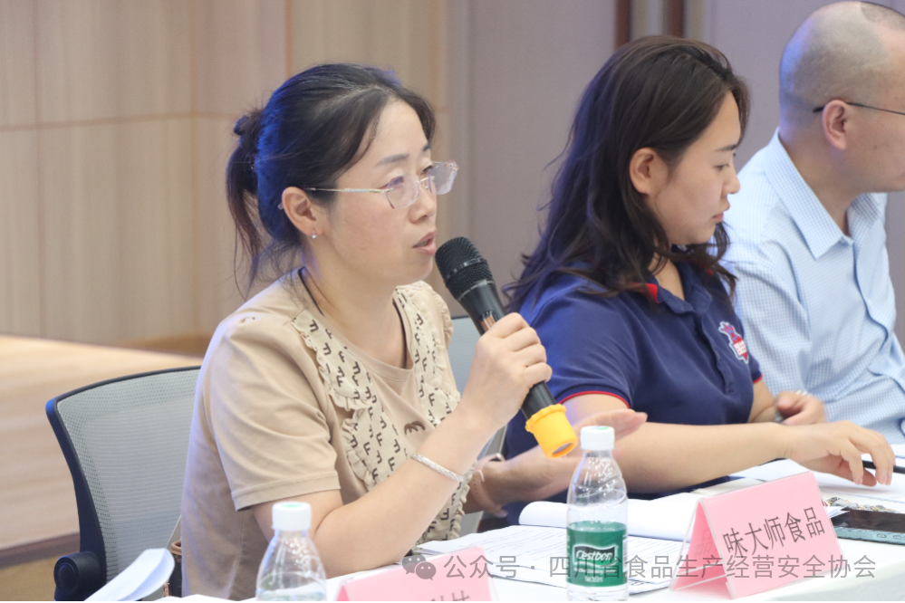 在企业代表发言环节,四川天味食品集团股份有限公司技术总监胡涛、食品安全与质量管理中心副总监单义琴,丹丹郫县豆瓣首席质量官范红梅,幺麻子食品股份有限公司品控部主管刘鹏飞、李雪梅,四川翠宏食品有限公司经理陈忠萍等企业代表结合生产实际发言,提出 “希望标准在生产过程微生物控制指标上,兼顾不同品类复合调味料的工艺差异”“建议增加智能化生产设备卫生管理的指导性条款” 等意见。