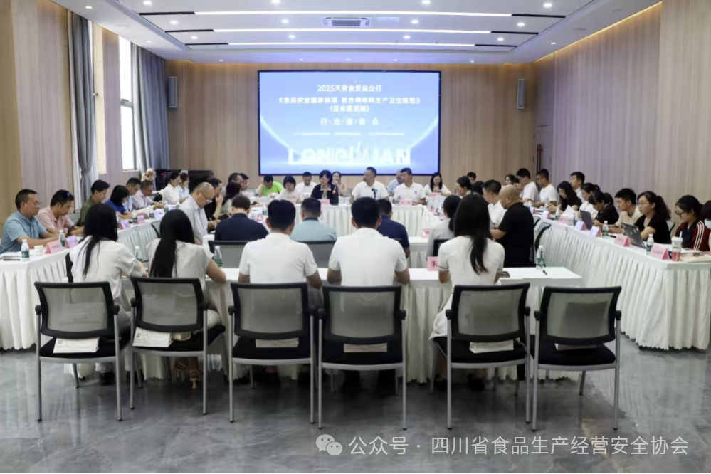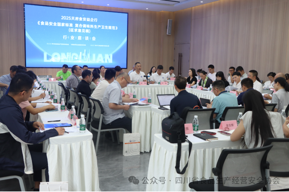 会议伊始,由四川省食品生产经营安全协会会长李军主持,逐一介绍了出席座谈会的各方代表 — 包括四川省、成都市、德阳市等地市场监督管理局监管人员,重庆市食品药品检验检测研究院、四川省食品检验研究院等技术机构专家,新希望集团美好食品等行业专家,以及四川天味食品、丹丹郫县豆瓣、饭扫光食品等近 30 家复合调味料骨干企业代表。各方代表共同搭建起 “监管 - 技术 - 企业” 的沟通对话平台。 03 锚定标准修订核心价值