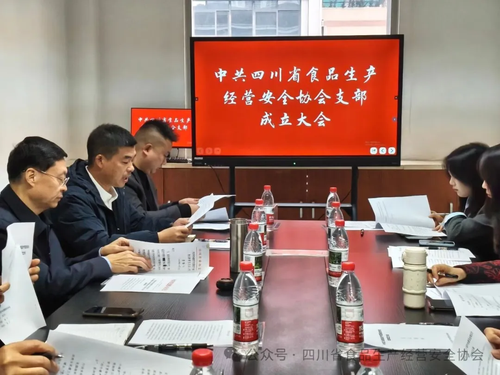 党建领航食安路 凝心聚力启新程 —— 中共四川省食品生产经营安全协会支部成立大会圆满召开发表时间:2025-12-05 10:18 党旗飘扬映初心,砥砺奋进担使命。2025 年 12 月 1 日中共四川省食品生产经营安全协会支部成立大会在协会会议室隆重召开。会议由协会秘书长、支部书记吉礼主持,省市场监管局社会组织联合党委书记李晋川同志、省市场监管局社会组织联合党委委员,食品生产处处长张泽军、四川省食品生产经营安全协会、四川省乡村餐饮业协会相关负责人及工作人员进行了发言。
